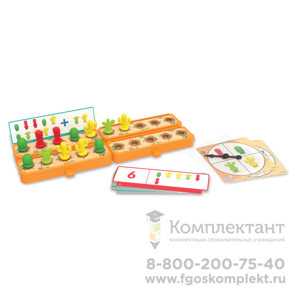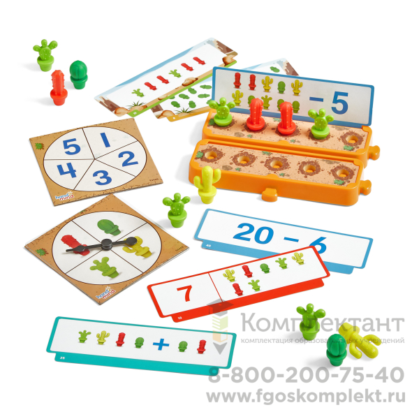 Забавные кактусы спешат познакомить малыша с цифрами и формами. У них важная миссия - научить составу числа, порядковому счёту, сложению и вычитанию. Для этого из далёкой жаркой пустыни они привезли с собой карточки с заданиями, грядки и спиннеры.