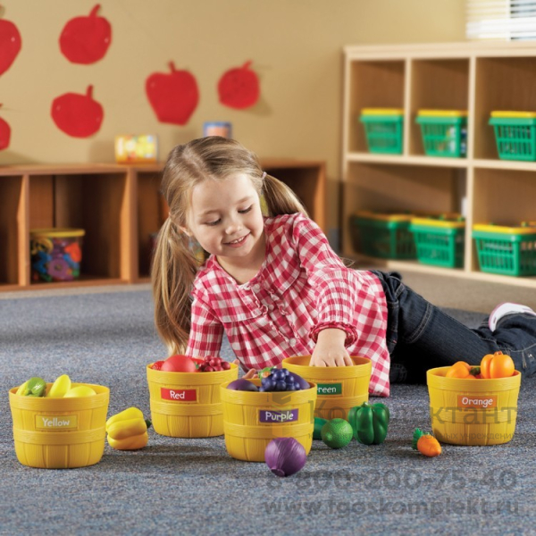 Содержимое овощных корзиночек по цвету и размеру не отличишь от настоящих даров природы! Это прекрасный дидактический материал для занятий на определение цвета и тренировку сортировочных навыков.