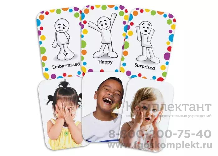 - Сначала отсортируйте человечков, в соответствии с их эмоциями. Для этого используйте специальные карточки с названиями чувств. Найдите фигурку с подходящим состоянием и создайте мини-группы.
