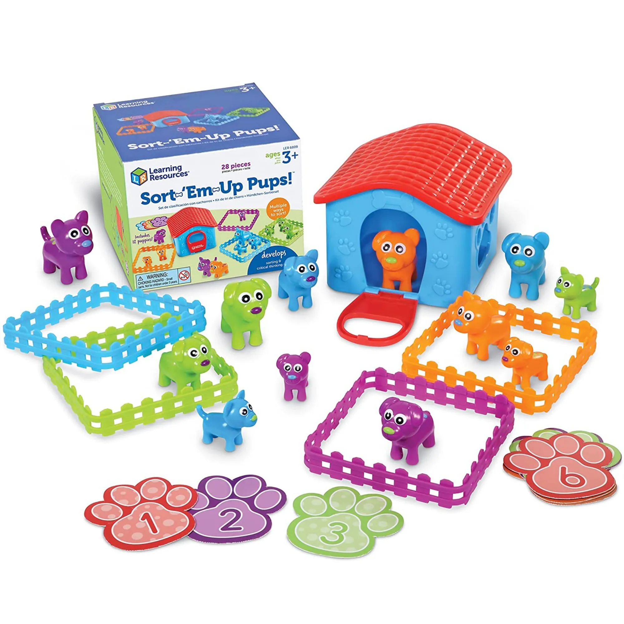 Посмотрите внимательно на этих дружелюбных маленьких собачек, и вы увидите, что ни одна из не повторяется - каждая из 12 собачек имеет различную комбинацию цветов, размера, формы ушей и хвоста, так что дети могут сортировать их по 6 различным признакам.